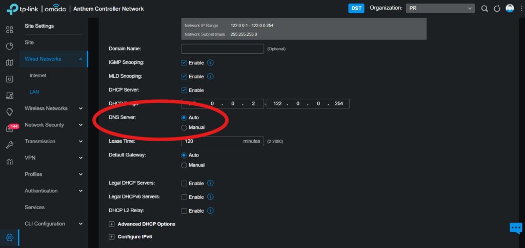 Then I have gone to Wired Networks → LAN, then go to Admin