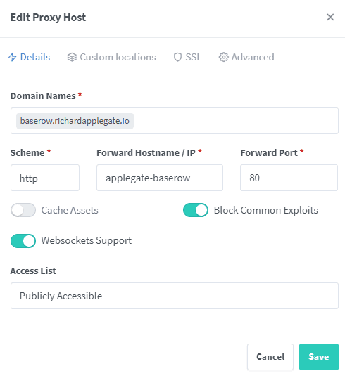 Before you deploy, please ensure you follow the high light and modify and edit the networks to match your nginx proxy manager and MariaDB Database Network. Then, deploy the stack and this app is online but not show on site. We need to go to nginx proxy manager to set up a proxy host for baserow.
