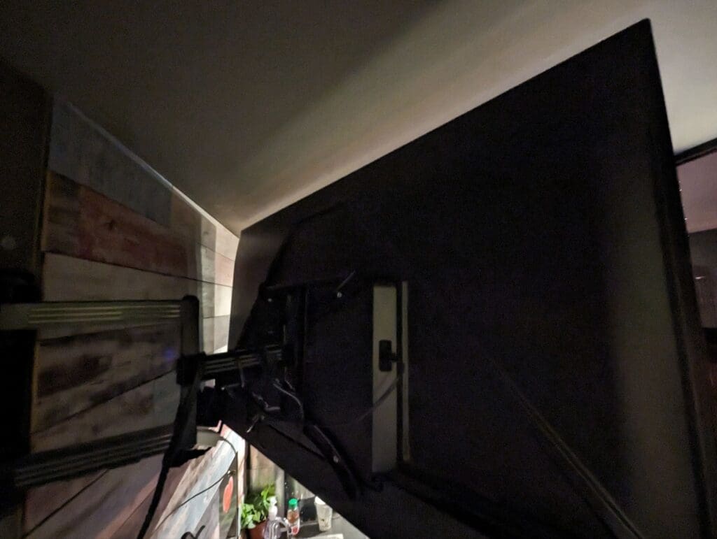 After attaching the mount and lifting the TV into place (a solid upper-body workout!), I made sure all the wiring was neat, hidden, and safe. Once everything was set, I powered up the display—right in the center of the action, perfectly angled for everyone to see.