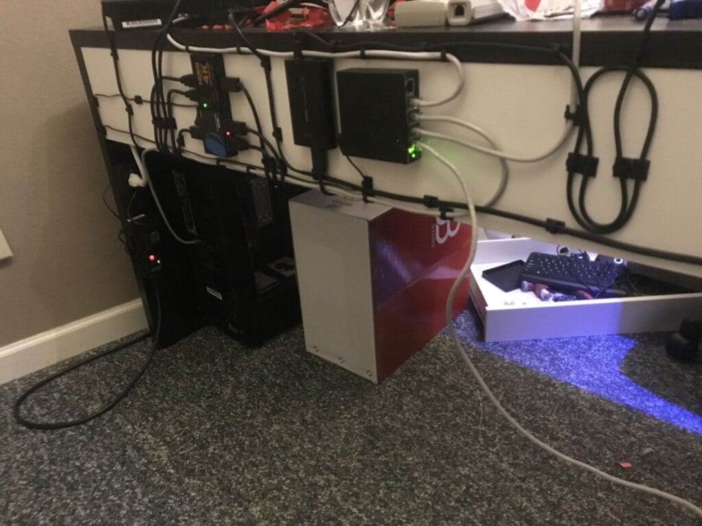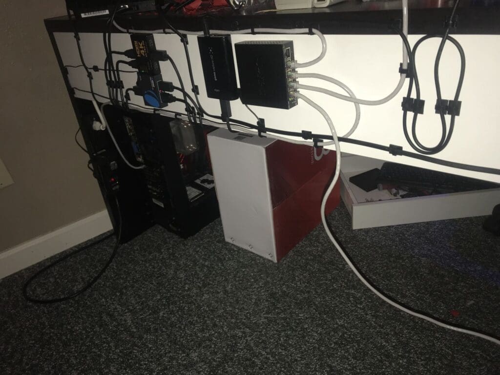 Yeah, I'm always looking to keep the wires off the floor. We've got many cats around here, so I came up with this idea to avoid any animals eating my wires.
