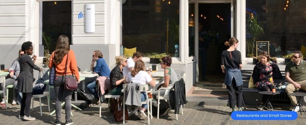 Coffee stands are an example. If you don't have coax wall or cable to use service Internet, we can do wireless bridge. If you have internet from another store, we can ask the office lease for permission to add a Gigabit Wireless Bridge to the building roof. You own a residence or business, I can do install that for you. One cable 100–150 feet to your office or living room to hook up your router is all you need. Unless you change network information on your router, it is a plug and play device.