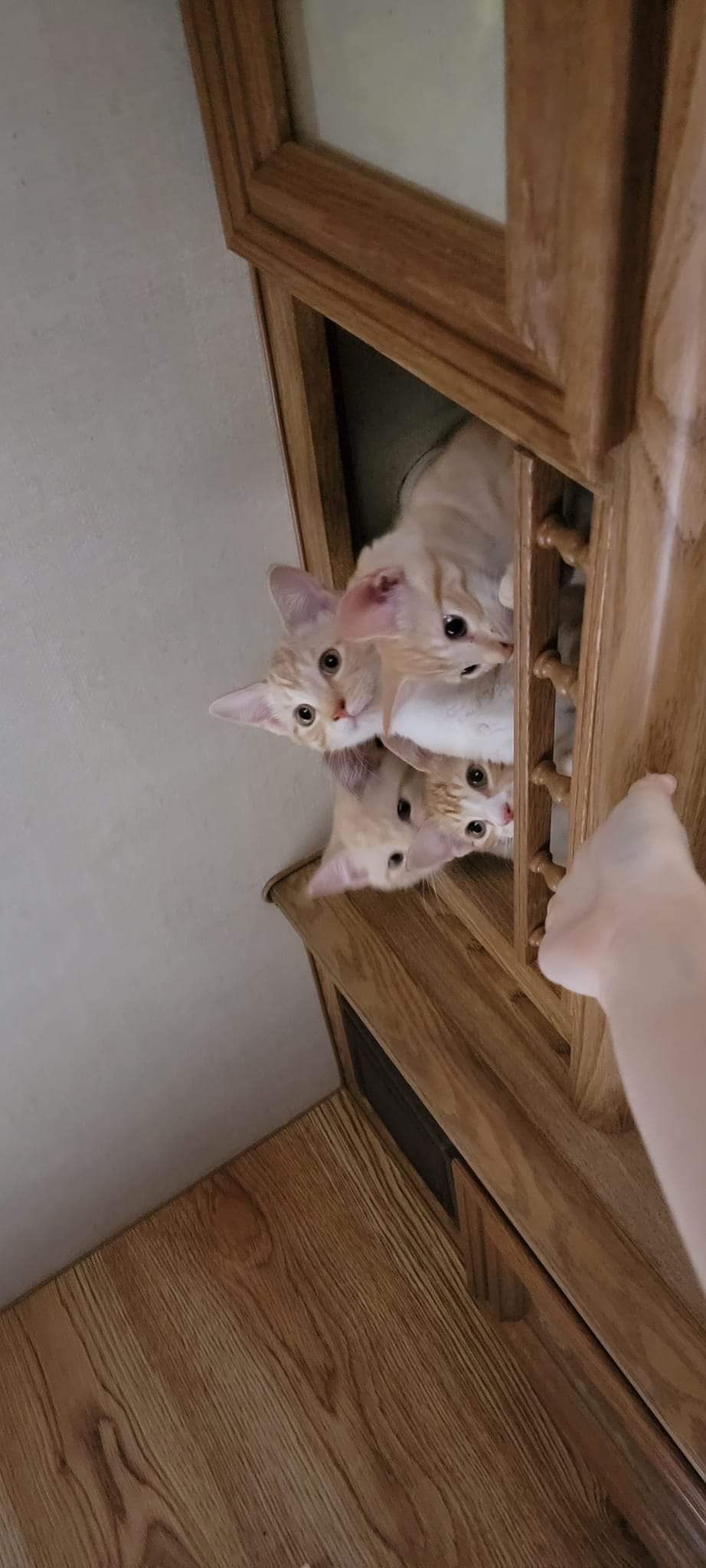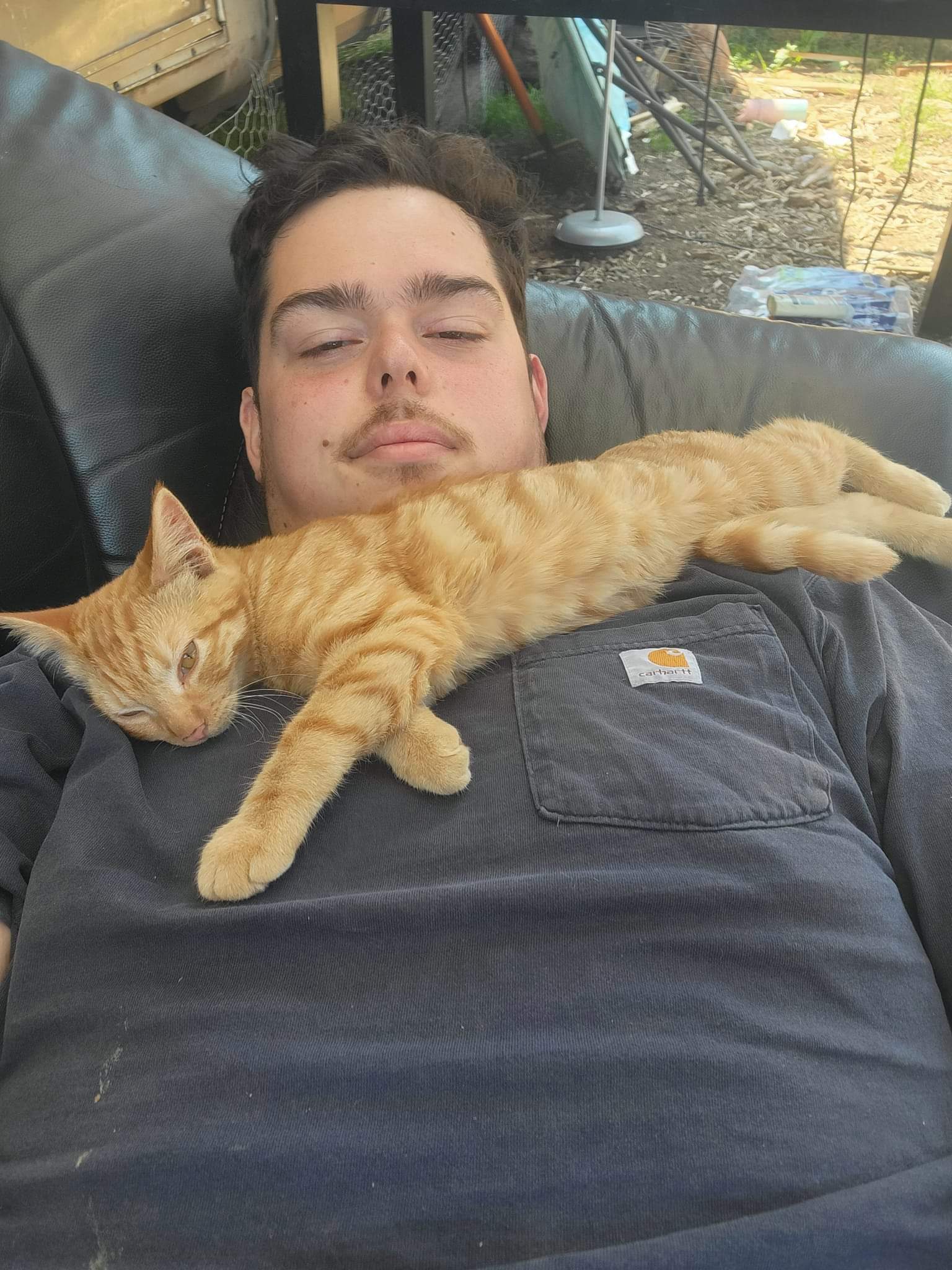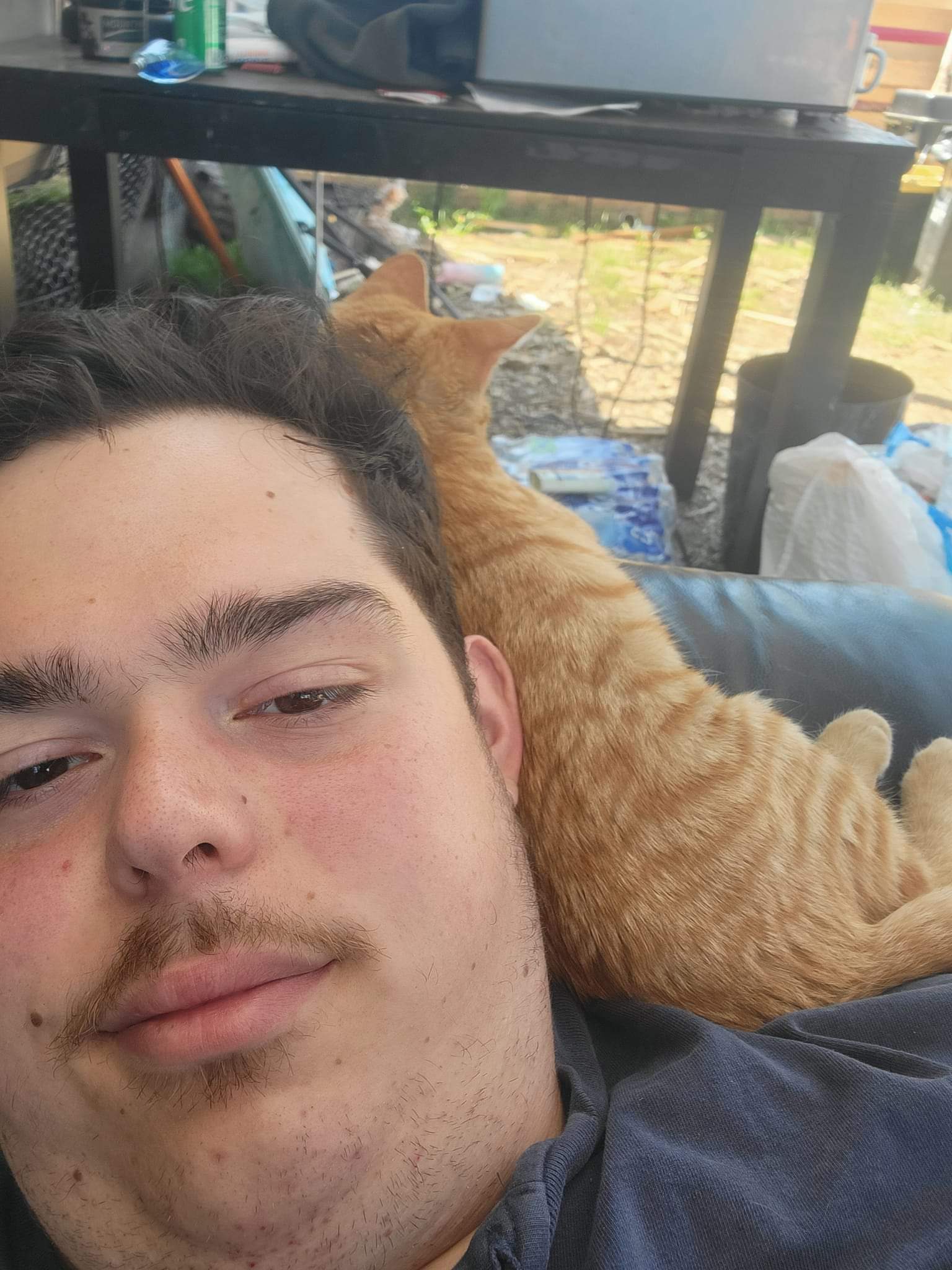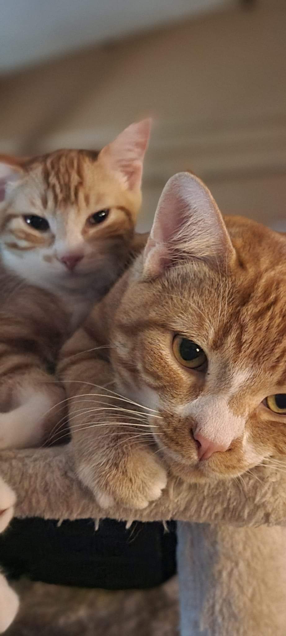 These are my beautiful cats who have been by my side throughout my entire life. They have always given me love and companionship, and I care for them deeply. Now, they have a new home—a safer and more comfortable place to live. Since my motorhome was not safe anymore, my cats have moved into our house, where they have both a garage and a cozy home to enjoy.