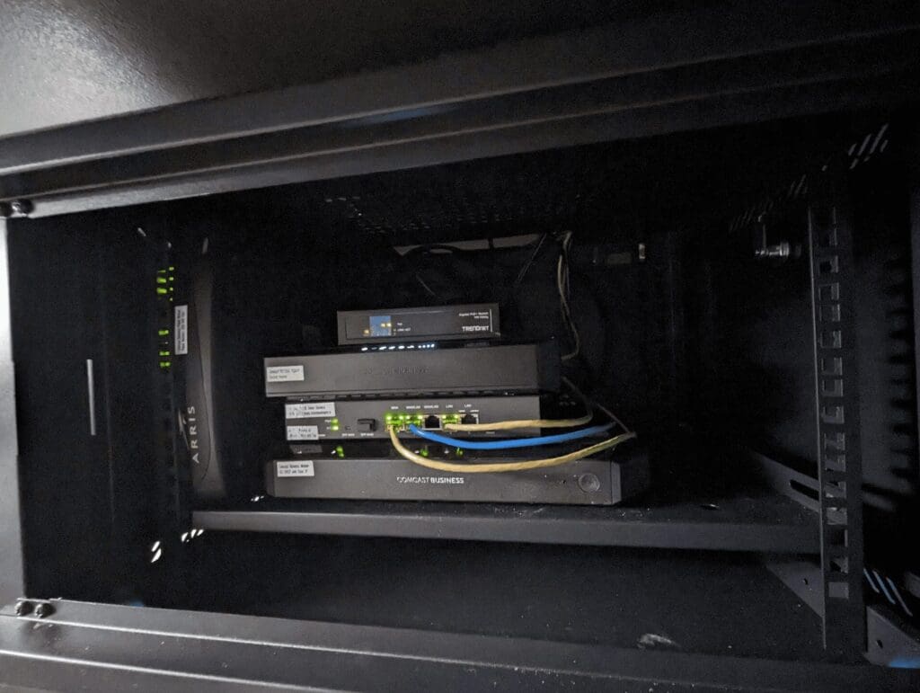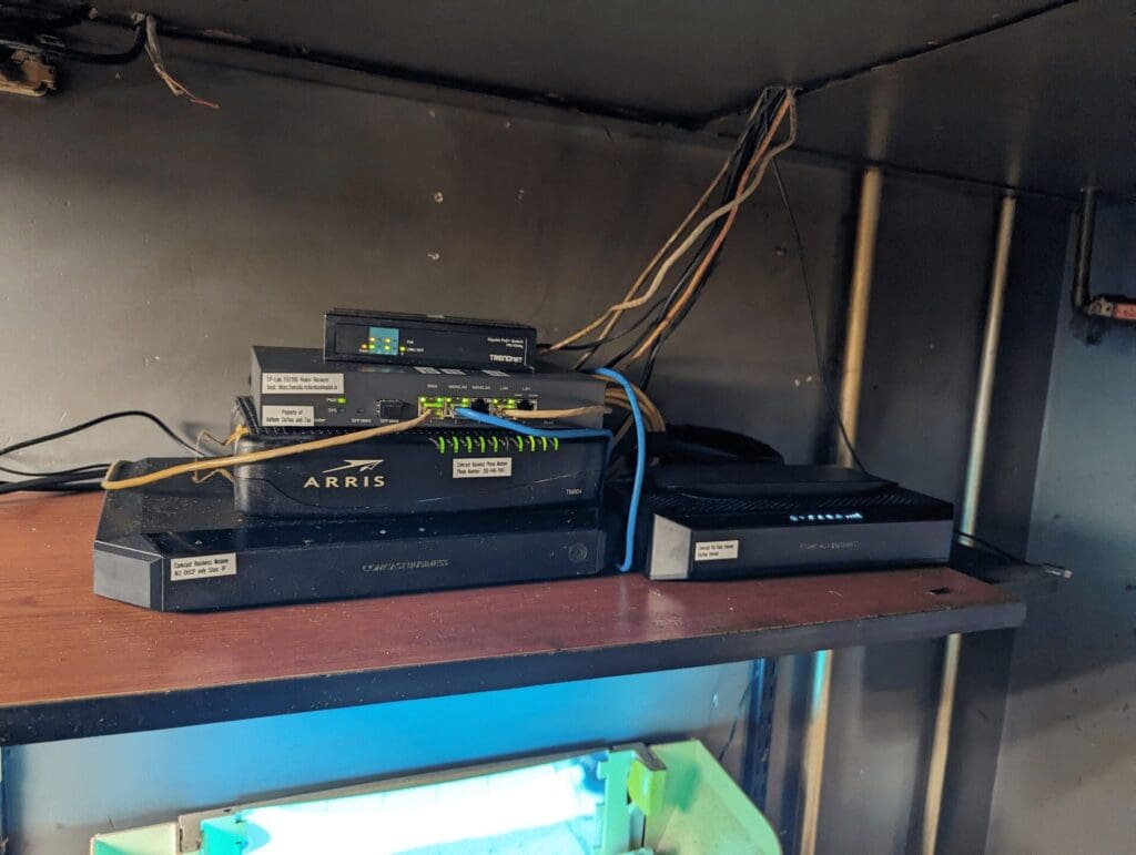 Just wrapped up a much-needed network upgrade at Anthem Coffee & Tea! We’ve moved from a basic shelf to a secure, professional cabinet. This isn’t just about looks—it’s about reliability and maintenance.