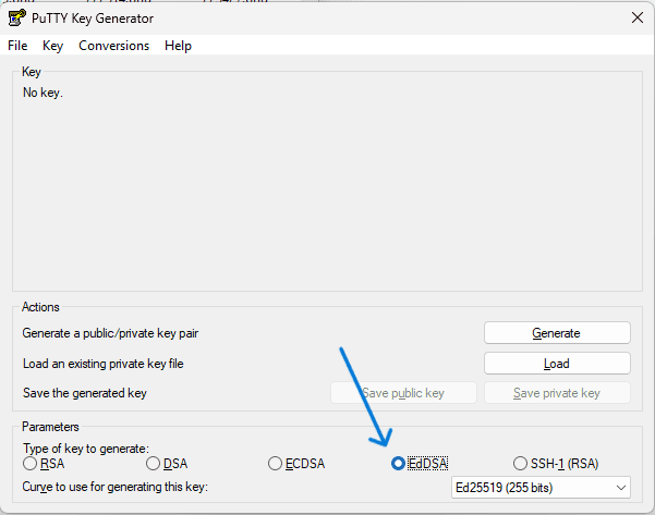- select EdDSA then select Ed25519 then generate