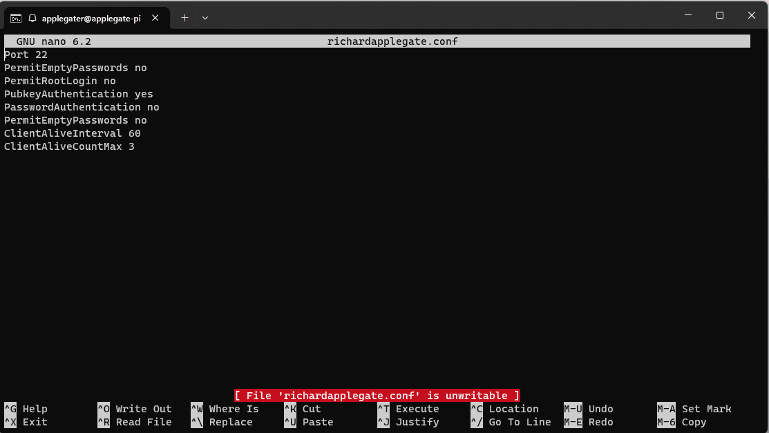 The server can still be accessed with a password, so we must proceed with the server Linux SSH configuration and generate the file richardprofile.conf or whatevername.conf. The SSH path is /etc/ssh/sshd_config/sshd_config.d/richardprofile.conf.
