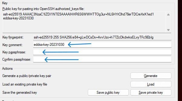 - After you generate, you can modify key comment and key passphrase