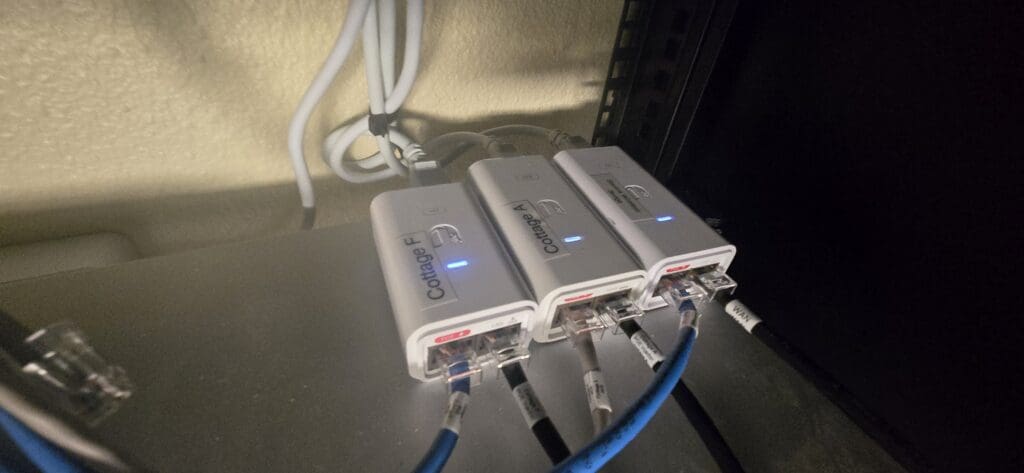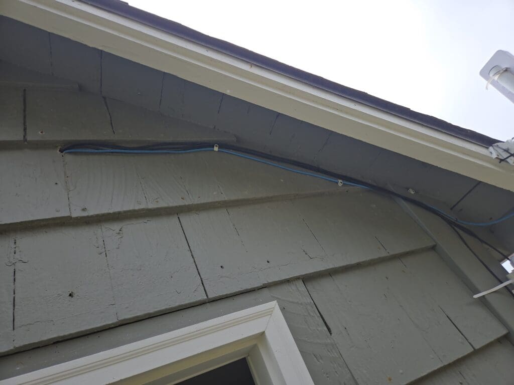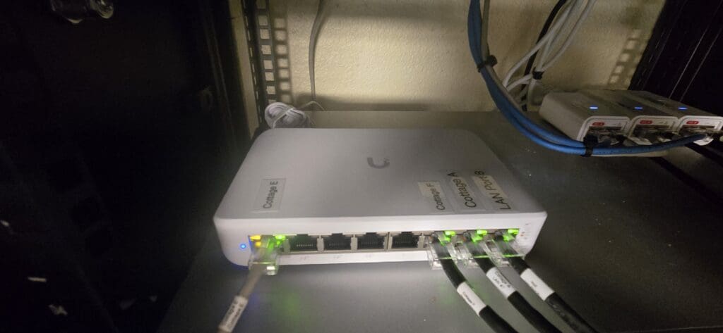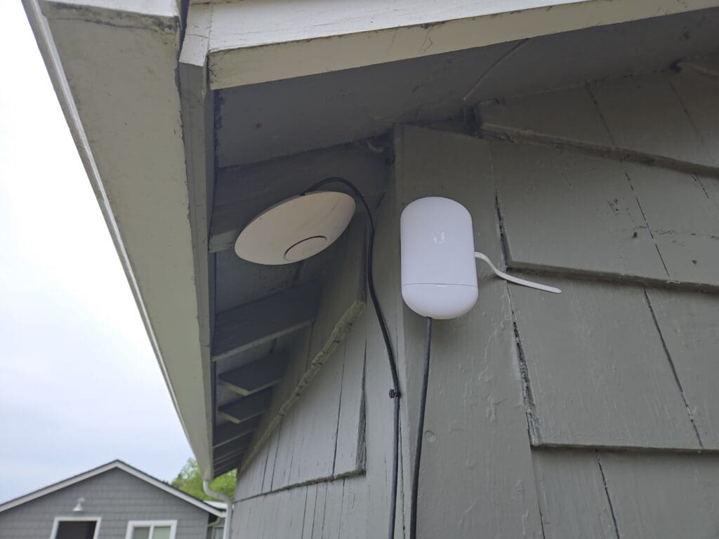 We swapped in a brand-new NanoStation to get things back online, but that revealed a second problem: the existing Cat 5e cable running outdoors was not compatible with Power over Ethernet (PoE) requirements and could not reliably power the new access point hardware. The fix was straightforward — replace it with a proper outdoor-rated PoE cable built to handle both the electrical load and the elements. With that in place, the new access point came up without issue and the network was stable for the rest of the stay.