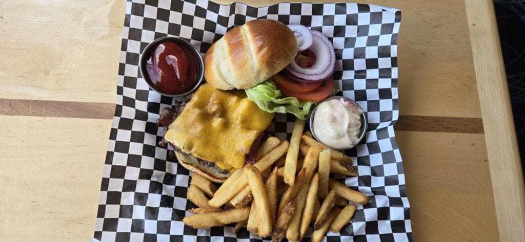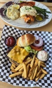 I'm having a bacon charburger and jasmine with Australian Lobster Tail. They were amazing, the art was beautiful and the chef did an excellent job.